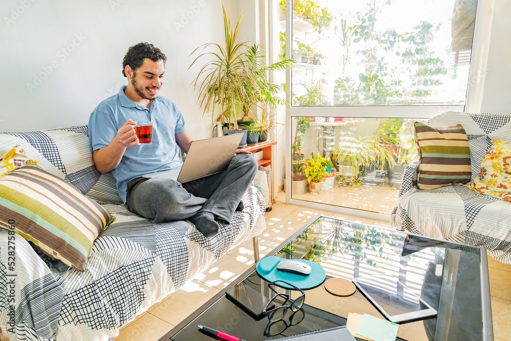 Relaxed calm businessman resting sit at home office.