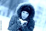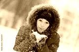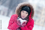 Happy young woman plays with a snow