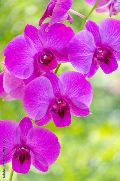 Pink orchid on green nature background, Blooming orchids on a green background.