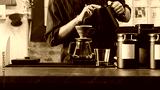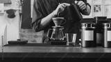 Professional barista making filtered drip coffee in coffee shop. Close up of hands barista brewing a drip hot espresso coffee, pour over coffee with hot water and filter paper in coffee cafe.