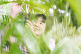 Young adult asian woman wear eyeglasses happy face mental therapy with nature environment