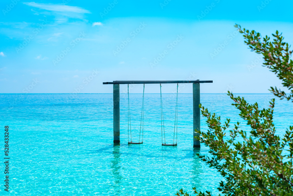 view on a tropical swing in water in the sea in the Maldives