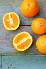 Fresh oranges on the rustic table