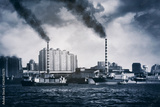 Industrial factory smoke near shipyard