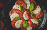 Salads with traditional italian burrata and mozzarella cheese with arugula and tomatoes