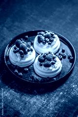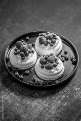 Mini Pavlova cakes topped with berries and mascarpone cheese