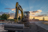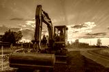 An excavator at road repair works