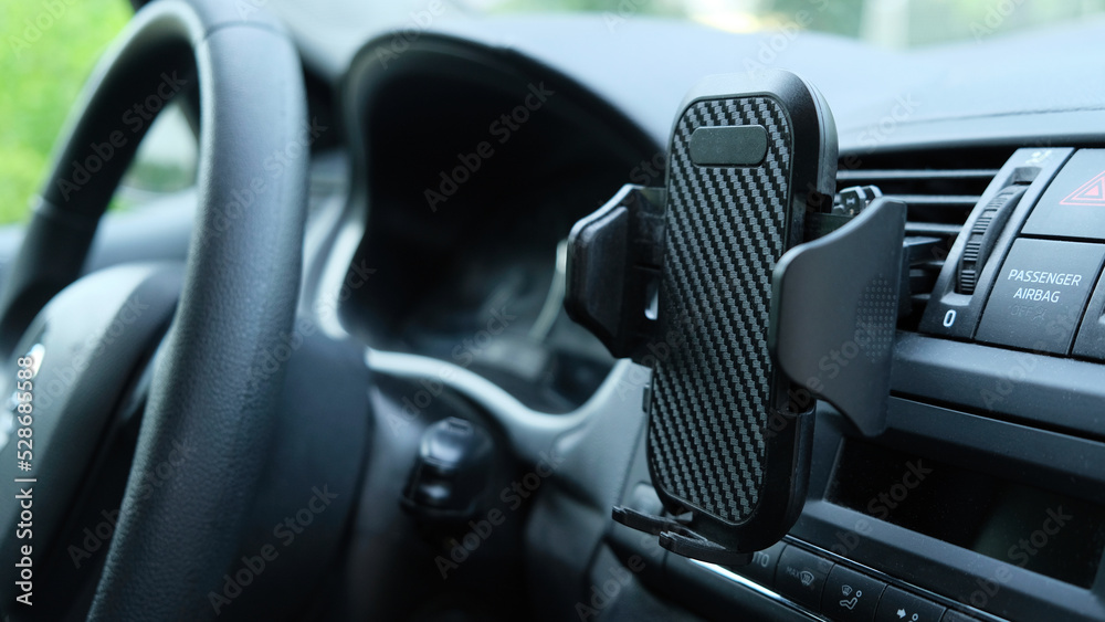 Plastic car phone holder without smartphone in a car