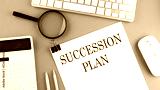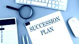 SUCCESSION PLAN written on paper with office tools and keyboard on the grey background