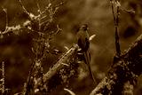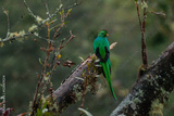 cloud forest of central america: esmerald green quetzal sitting on branch in costa rica