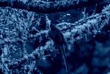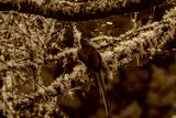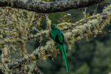 emerald green quetzal (Pharomachrus) being the symbol of freedom sitting on a branch in a cloud forest