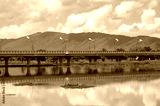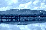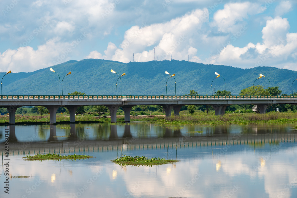 The large bridge build for crossing Nong Luang the largest lake in Chiang Rai province of Thailand.