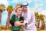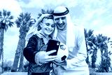 Arab businessman takes a selfie with a young fan during the time of the soccer world championships