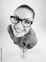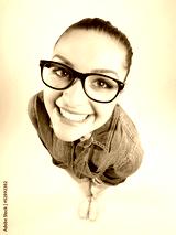 pretty girl with perfect teeth wearing geek glasses smiling