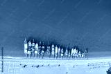 Drone aerial photo of boats on the coast of mediterranean turquoise azure sea. Top view