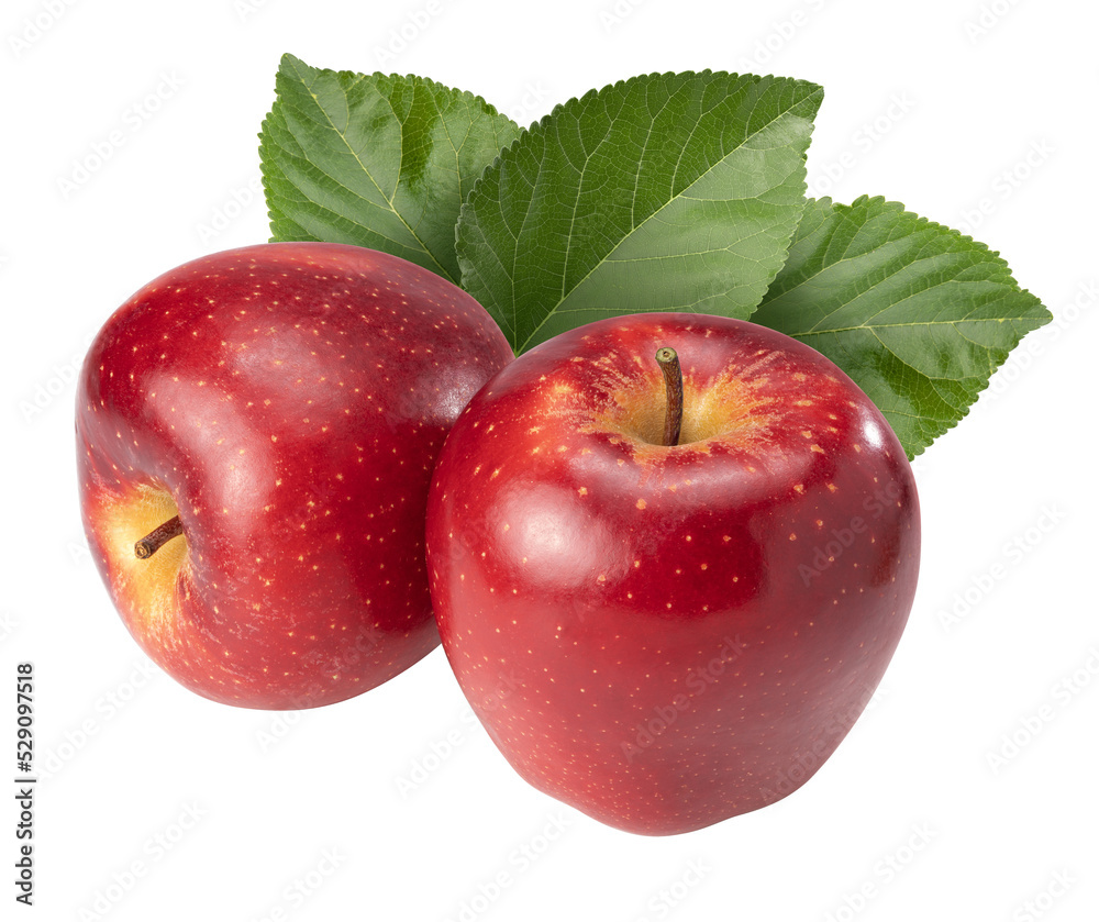 Fresh Red Apple with leaves isolated on white background, Red Apple on white background With clipping path.