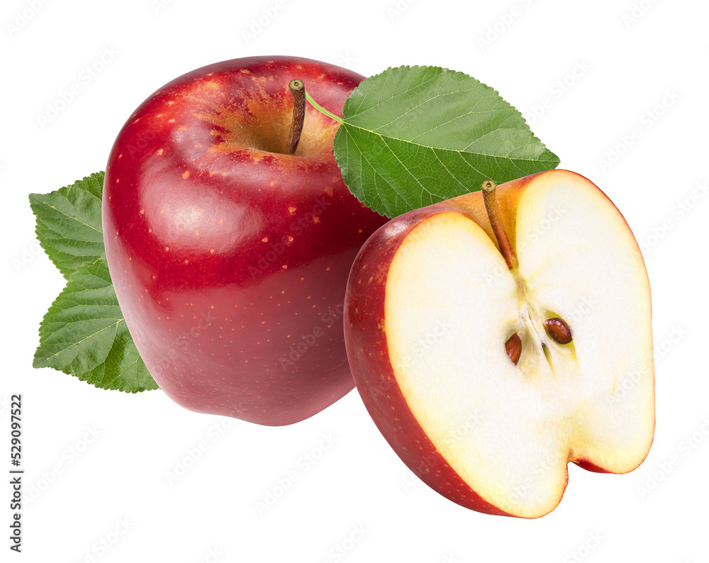 Fresh Red Apple with leaves isolated on white background, Red Apple on white background With clipping path.