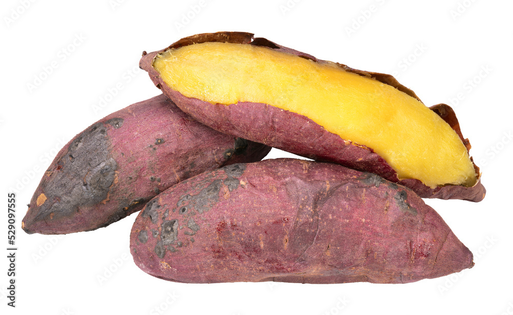 Baked sweet potato isolated on white background, Roasted Sweet Potato on white background With clipping path.