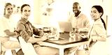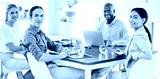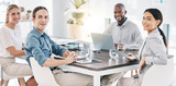 Collaboration, team meeting and diversity with business people sitting at a boardroom table for planning, motivation and marketing management. Portrait of teamwork, training and happy crm employees