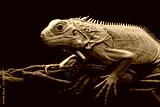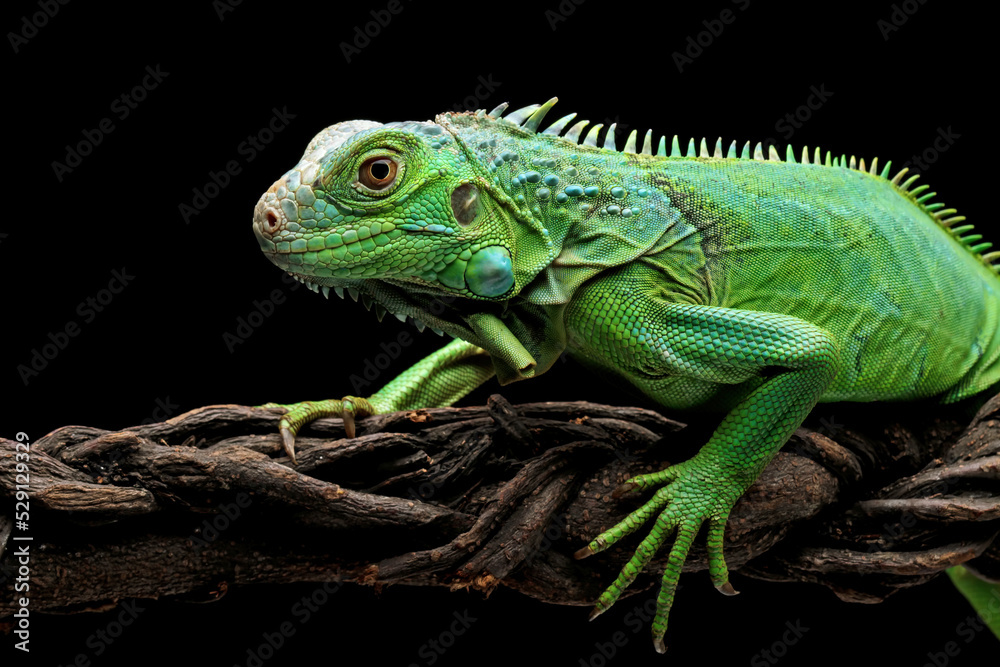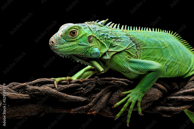 green iguana head and spikes, closeup head of green iguana, animal closeup