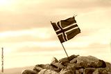 Norwegian flag on top of a mountain in Norway