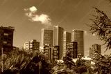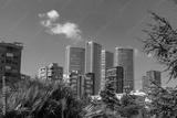 Sustainable cities concept. Downtown district view from a public park.