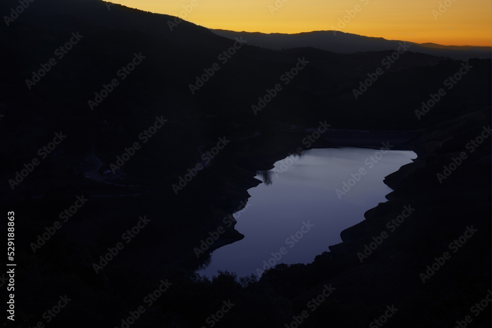 Twilight over Guadalupe Reservoir Looking West via Almaden Quicksilver County Park in San Jose, California.
