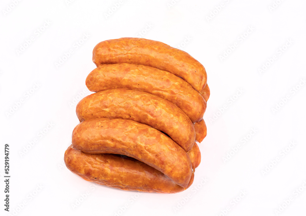 Traditional smoked pork sausage, isolated. Polish meat sausage, a packshot photo for package design.