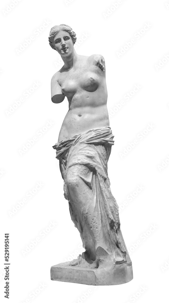 Plaster statue of Venus Milo. Beautiful woman Aphrodite sculpture solated on white background with clipping path
