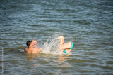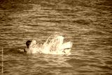 Guys in the lake throw a girl into the water