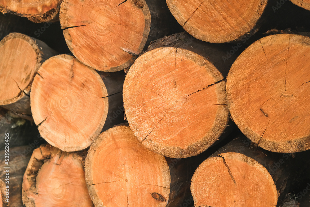 A woodshed with logs. An alternative source of thermal energy for heating the house.