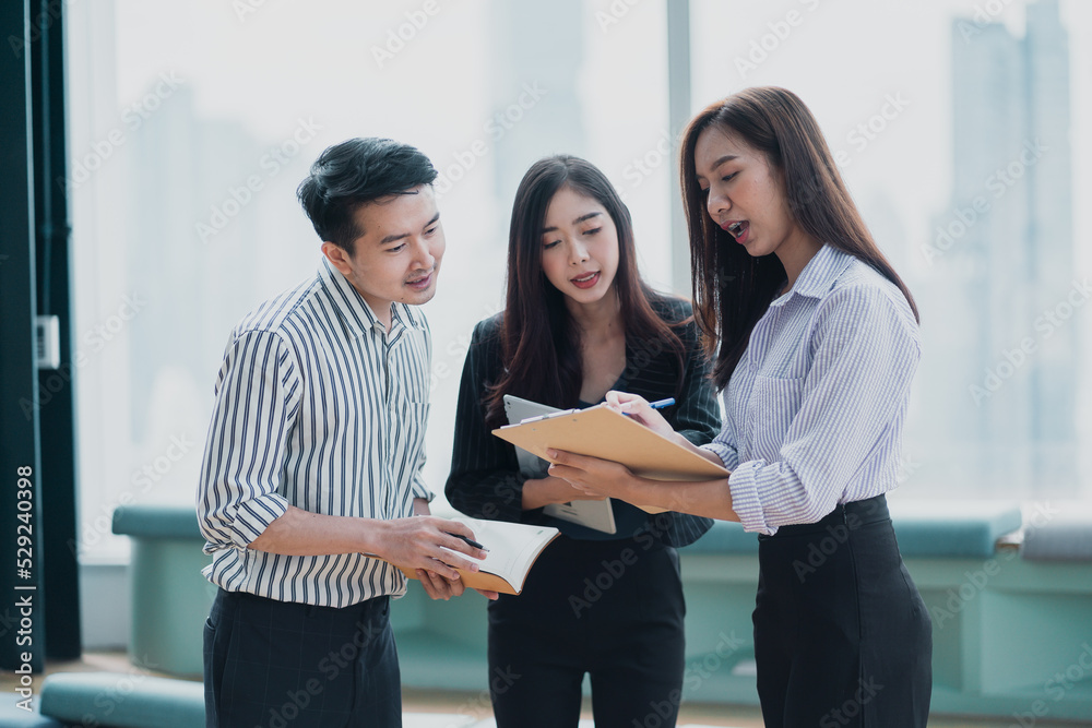 Asian adult Asian brainstorming business businessman.Colleagues from computer communication company.human lifestyle laptop online office meeting