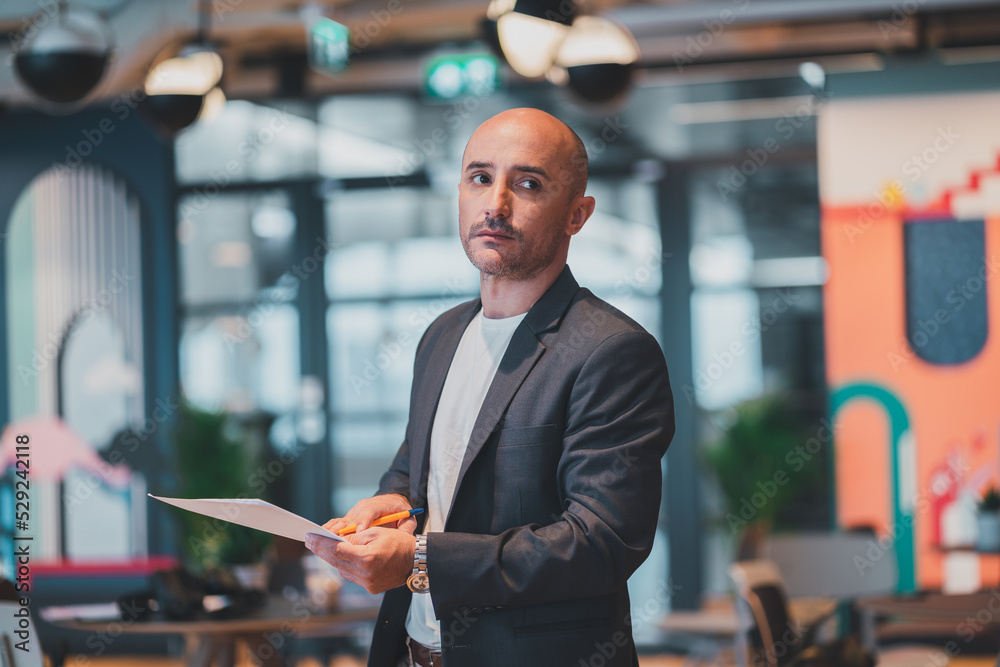 Attractive businessmen and entrepreneurs.Standing for success fits the discussion team with the technical window team at work.Communication, confidence and cooperation