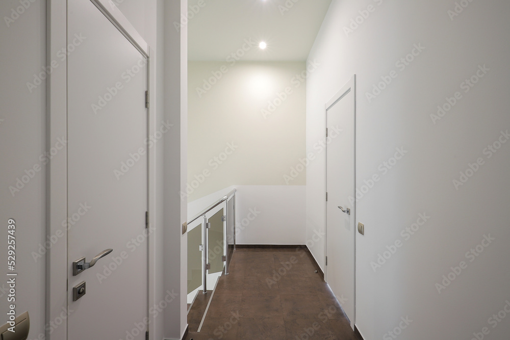 White interior doors in the white corridor