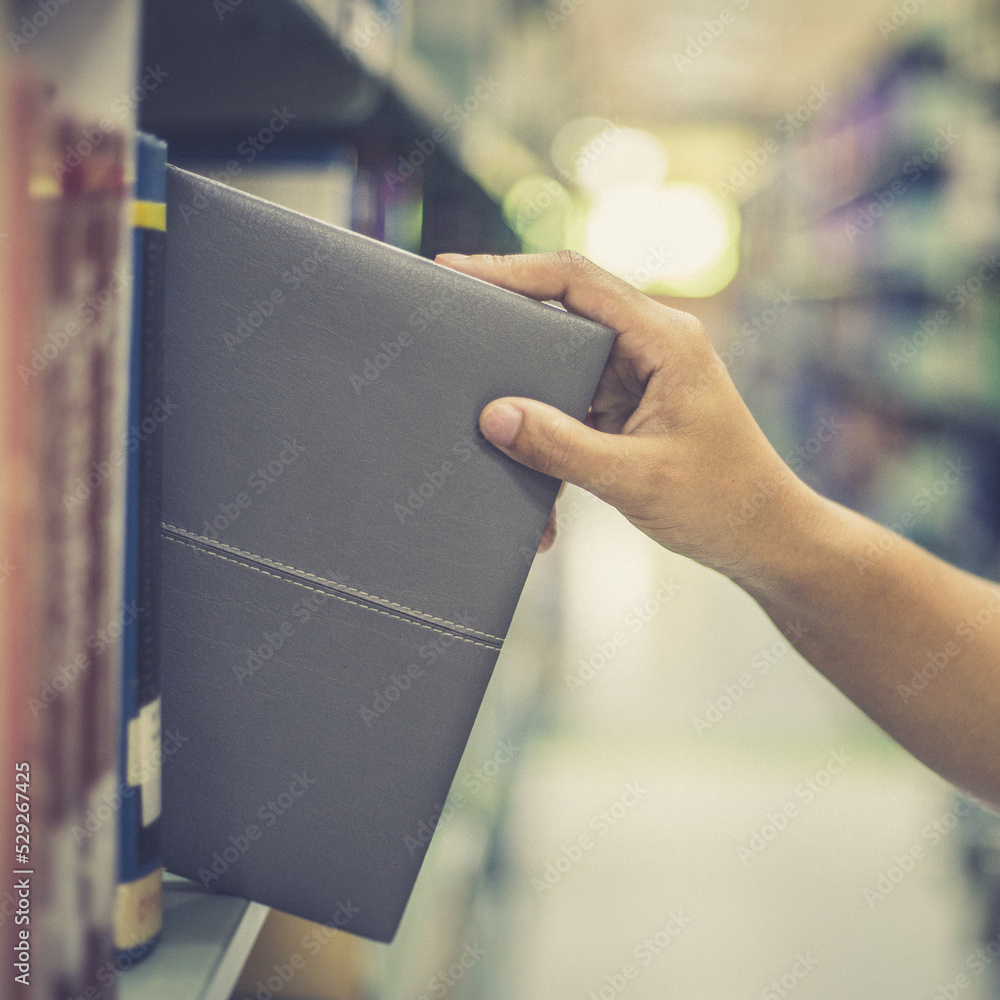 Young Asian women are searching for books in the university's great library, Learning in the library Concept..