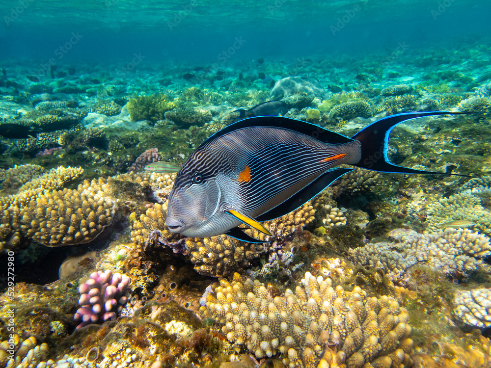 Unusual inhabitants of the sea in the expanses of the coral reef of the Red Sea, Hurghada, Egypt