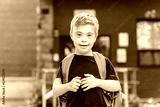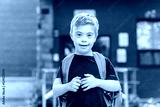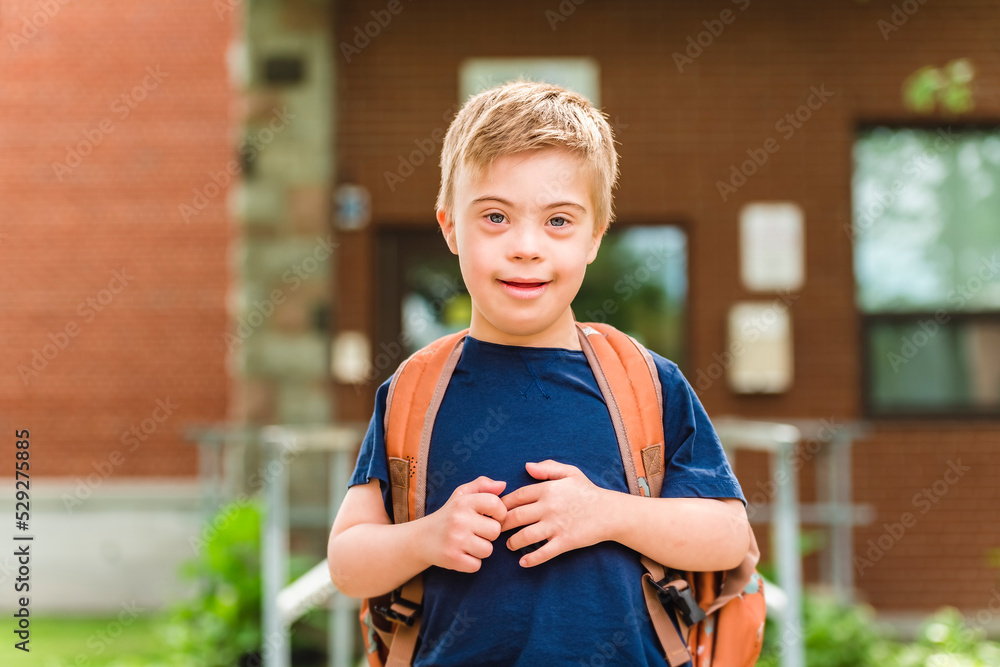 Portrait of a little schoolboy with down syndrome