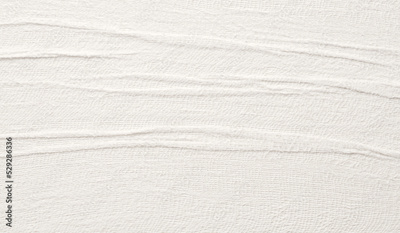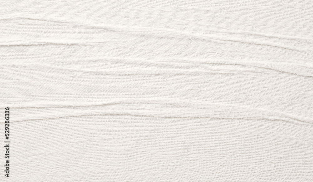 Empty crumpled wet canvas fabric blank texture copy space wave background. Gray beige pastel color.