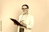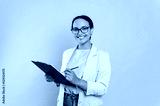 Elegant successful confident lovely brazilian or hispanic business woman, real estate agent, financial manager, in formal wear, stand on isolated background, holds documents, looks at camera, smiles