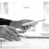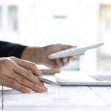 Financial businessmen analyze the graph of the company's performance to create profits and growth, Market research reports and income statistics, Financial and Accounting concept.
