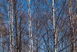 Brzozowy las, błękitne niebo, brak liści wczesna wiosna (3).