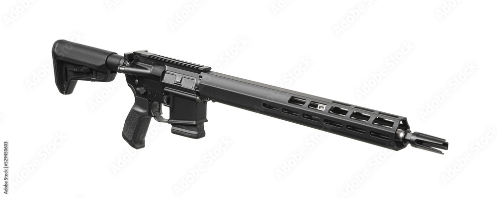 Modern automatic rifle isolated on white background. Weapons for police, special forces and the army. Automatic carbine. Assault rifle on white.