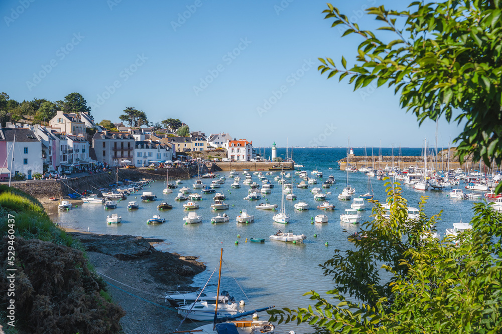 The city of Sauzon in Belle-Ile-en-Mer and its cute little harbor / France