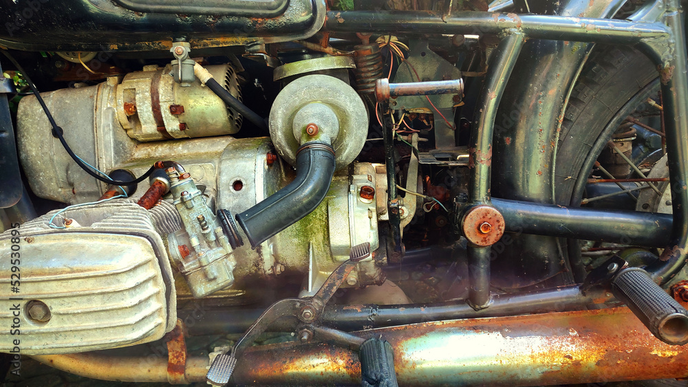 old steampunk aesthetic mechanisms from a sidecar - close-up texture of mechanical elements for the background of a wallpaper