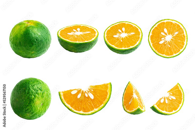 Sliced Calamansi or Green Orange Fruits isolated on white background with clipping path