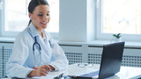Professional medical doctors working in hospital office making conference call. Medicine, healthcare and online consultation.