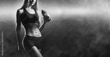 Slim fitness model on a dark background. Perfect shape of the female body. Sport, health and diet concept.
