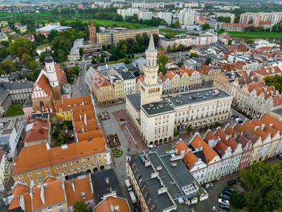 Opole Aerial View Market Square. Traditional Architecture Old Town from the Air. Upper Silesia. Poland. Europe.