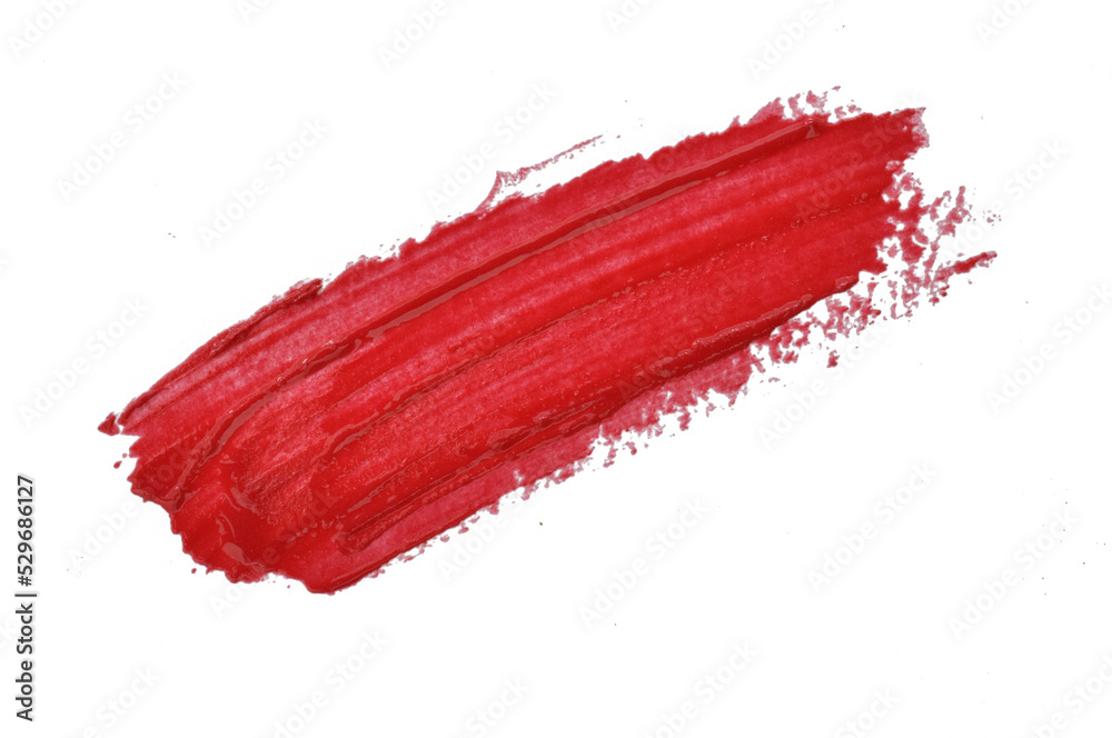 red lipstick strokes cream texture or acrylic color on white background. Beauty and make up concept