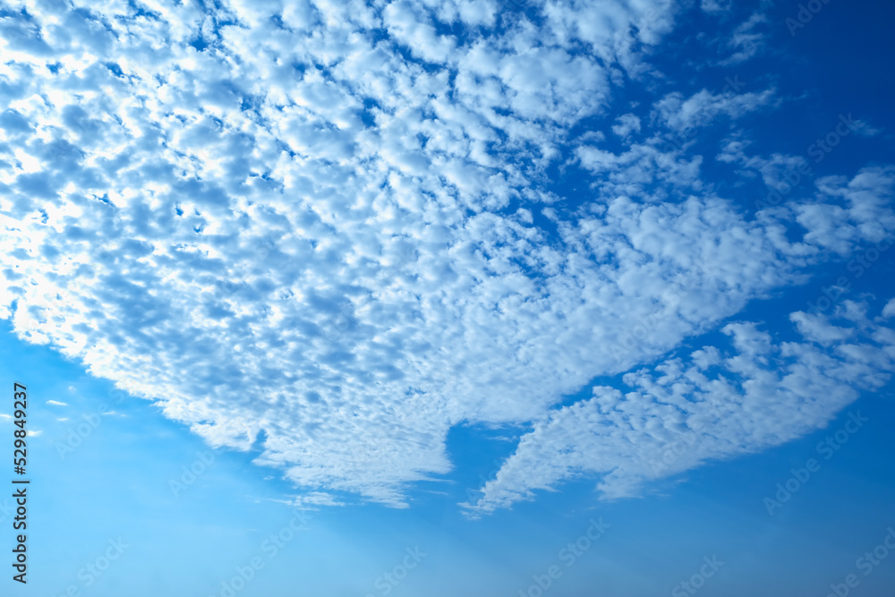 Blue sky with white clouds. Beautiful cloudy sky. Skyward. Endless skyline. The sky at dawn.